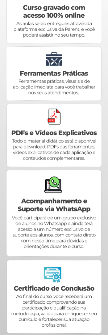 Banner lateral do produto. Segue a descrição do conteúdo: Pais e filhos vivem numa rede multi-camadas de conexões e influências que formam um sistema. Com as mudanças atuais muitos sistemas estão doentes e precisando de ajuda.<br />O Coaching para Pais e Filhos (Pareting Coaching) já é uma realidade nos EUA há 15 anos e cresce exponencialmente.<br />E essa é a oportunidade para os profissionais envolvidos no atendimento ou na educação de crianças, adolescentes e pais conhecerem as 10 maiores ferramentas de Coaching<br />usadas para potencializar os resultados e obter o apoio dos pais na resolução dos conflitos.<br /><br />