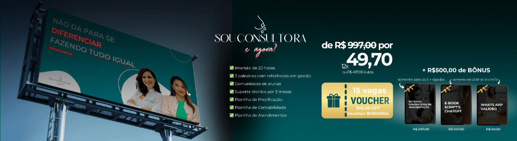 A Mentoria Sou Consultora, e Agora?! Tem como objetivo CAPACITAR você para que se torne referência no cuidado e atraia clientes que valorizam e pagam pelo seu trabalho.