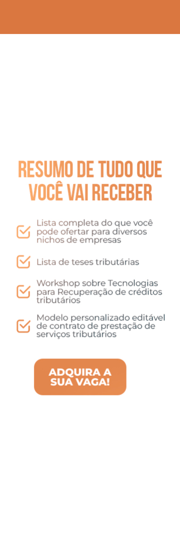 Banner lateral do produto. Segue a descrição do conteúdo: Esse E-BOOK mostra algumas opções de serviços tributários para ofertar a alguns nichos específicos do mercado tributário.