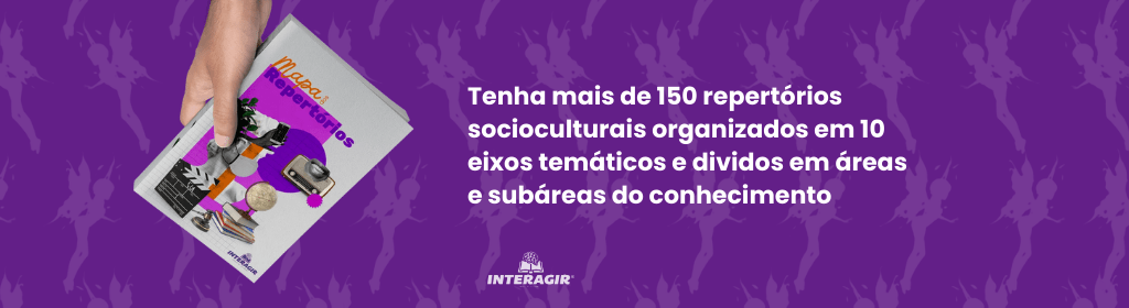 Com o Mapa dos Repertórios, você não precisará mais ficar pesquisando repertórios para suas aulas de redação, pois no material você encontrará mais de 150 repertórios socioculturais separados em 10 eixos temáticos, como Meio Ambiente, Saúde, Educação, Ética etc. Para facilitar a sua rotina docente, a listagem de todos os repertórios no material foi subdividida em áreas, como filmes, séries, documentários, obras de arte e da literatura, música e etc.