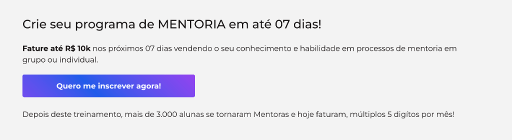 ? Acesso ao Treinamento Crie seu Programa de Mentorias em até 07 dias;