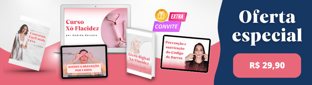 Curso Xô Flacidez + acesso a gravação por 2 anos + bônus prevenção e suavização do Código de Barras + Contorno facial mais leve + Séries de exercícios de alongamento + Séries de exercícios + Convite extra