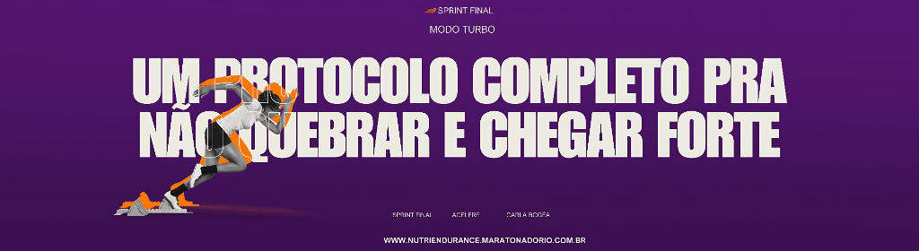 Banner superior do produto. Segue a descrição do conteúdo: Videoaulas de estratégia alimentar e suplementação para quem corre 21k e 42k. A nutrição inteligente que irá levar a sua performance para outro patamar. Tudo que você precisa pra não quebrar, e chegar forte.