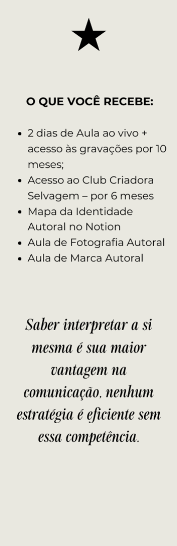 Banner lateral do produto. Segue a descrição do conteúdo: Neste treinamento você aprende a fazer marketing sem excessos, sem exageros e valorizando o essencial, focando em quem você e usando o que já é seu. É pra você voltar a ser simples, interessante e autêntica na sua comunicação.