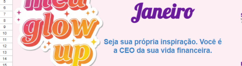 Apresento a Planilha Glow Up Financeiro, a ferramenta perfeita para a garota que quer transformar seu relacionamento com o dinheiro. Esqueça as planilhas chatas e complicadas! Este guia foi feito para ser seu mapa de sucesso, com um design leve, divertido e totalmente focado no seu empoderamento.