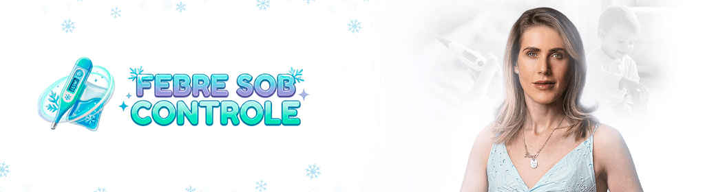 Banner superior do produto. Segue a descrição do conteúdo: Febre Sob Controle da Dra Danielle Vigiano é um curso prático para pais e mães que querem saber exatamente o que fazer quando a febre aparece, com mais segurança e menos desespero. Você aprende o que é febre de verdade, quando observar, quando agir em casa e quando procurar ajuda, além de entender como conduzir esse momento com mais tranquilidade no dia a dia. O objetivo do curso é te dar clareza para lidar com a febre infantil de forma responsável, sem pânico e sem improviso.
