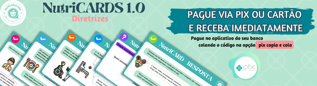 Os NutriCARDS são um combo de flashcards que inclui os assuntos de 6 principais diretrizes de nutrição (734 cartões, sendo 367 cartões com perguntas-frente e 367 cartões com respostas-verso).