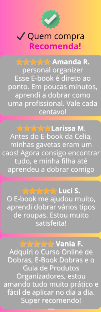 Banner lateral do produto. Segue a descrição do conteúdo: E-book com as principais técnicas de dobra, para ajudar na organização das roupas, de maneira que fique prático e funcional.