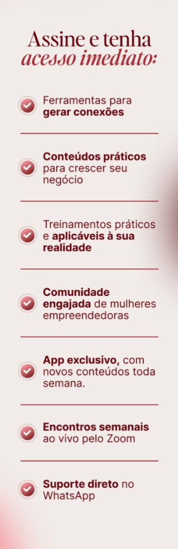 - Acesso a aulas e cursos exclusivos relacionados aos negócios femininos