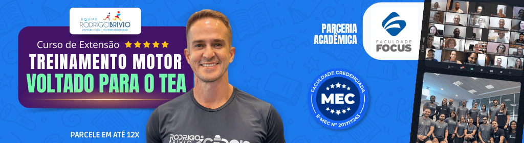 O Curso de Extensão "Treinamento Motor voltado para o TEA" da collab Equipe Rodrigo Brivio e Faculdade Focus é um curso aprovado e com certificação pelo Ministério da Educação (MEC), perfeito para o profissional de educação física, de fisioterapia, de psicomotricidade ou de área afins. Vagas limitadas.