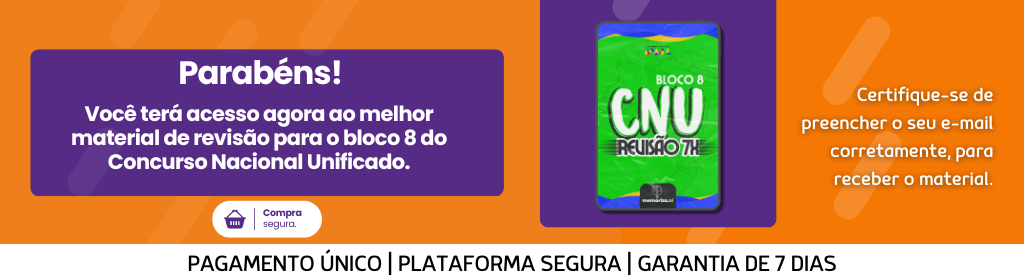 Banner superior do produto. Segue a descrição do conteúdo: Revise em apenas 7 dias as matérias que mais reprovam no Bloco 8 do Concurso Nacional Unificado de 2024!