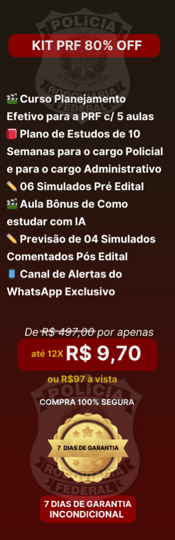 Aqui você vai encontrar Planejamentos para PRF, tanto para cargos policiais ou administrativos, e também aulas direto ao ponto que te direcionem como se planejar, conciliar os estudos com vida pessoal e trabalho e mesmo assim conseguir passar.