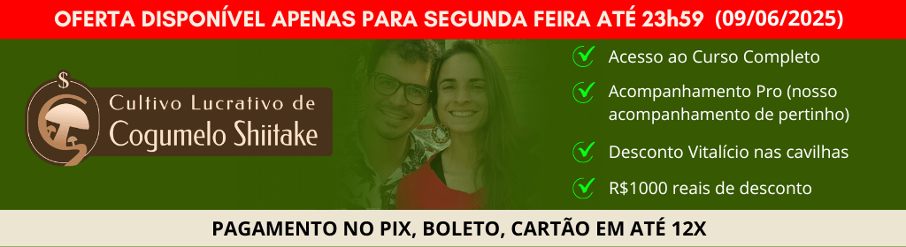 Além desse cenário, seu cultivo em toras é extremamente simples, com investimento inicial bem baixo e altamente rentável, superando outras opções de produção como por exemplo morangos, frutas, hortaliças em geral, etc.