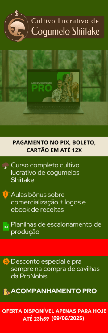 Nosso curso de cultivo de cogumelo shiitake orgânico em toras é indicado para todas as pessoas que desejam cultivar e lucrar com cogumelo, independente do tamanho do seu espaço!