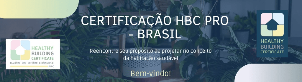 Banner superior do produto. Segue a descrição do conteúdo: O Healthy Building Certificate para Profissionais, ou HBC-PRO é a certificação conferida a profissionais que são capazes de aliar a sua especialidade aos parâmetros da certificação para criar ou manter espaços saudáveis em sua interação com a vida humana.