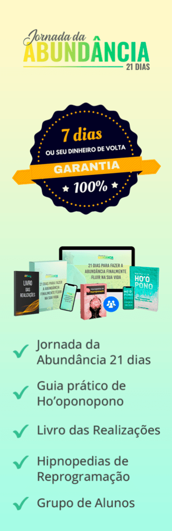 Banner lateral do produto. Segue a descrição do conteúdo: Jornada HO´OPONOPONO 21 Dias