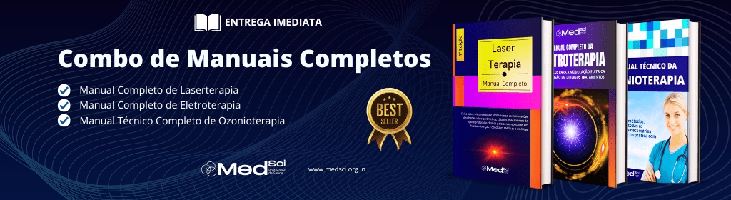Banner superior do produto. Segue a descrição do conteúdo: Combo Essencial para Terapeutas Inovadores: Domine as técnicas de Laserterapia, Eletroterapia, Ozonioterapia com nossos manuais completos. Amplie seu conhecimento e eleve seus resultados!