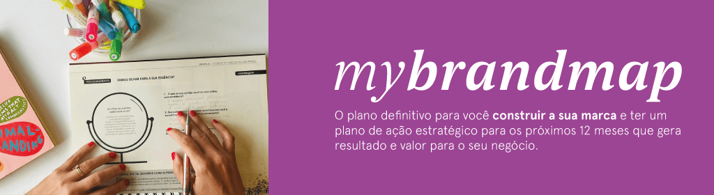 Banner superior do produto. Segue a descrição do conteúdo: Conheça o My BrandMap, um planner de marca estratégico criado para que você tenha um mapa claro e prático de como aplicar todos os conceitos de branding, marketing digital e gestão da sua marca de forma organizada, semana a semana.