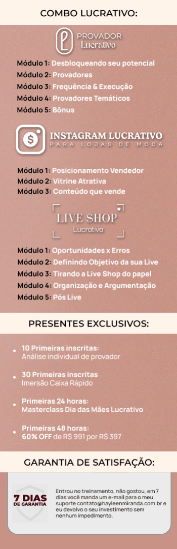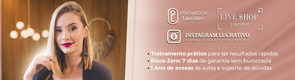 Banner superior do produto. Segue a descrição do conteúdo: O curso Provador Lucrativo irá te ajudar a desbloquear seu potencial nas redes sociais e aumentar as vendas da sua loja. Você aprenderá como chamar a atenção do cliente com provadores criativos e despertar o desejo pela compra dos seus produtos. As aulas são gravadas e online, divididas em módulos com exercícios práticos para implementação e resultados imeditados.