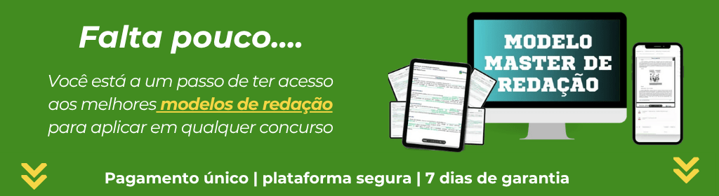 Banner superior do produto. Segue a descrição do conteúdo: Tenha acesso a modelos de redação que se encaixam em qualquer tema e podem ser usados em qualquer banca.