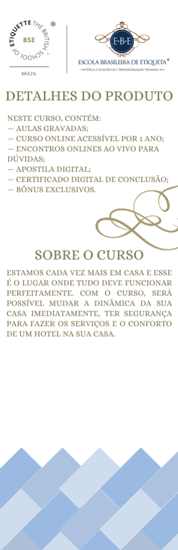 Leia mais sobre nossa escola e outros cursos em: https://www.escolabrasileiradeetiqueta.com.br/