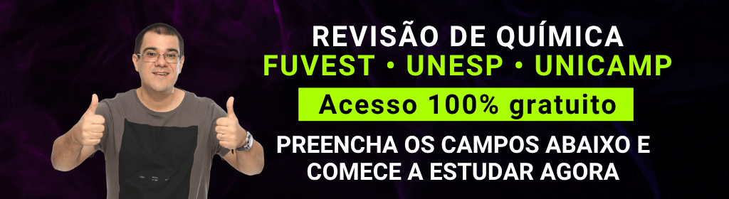 Banner superior do produto. Segue a descrição do conteúdo: Curso de revisão de química para o trio paulista (FUVEST, UNESP E UNICAMP). Curso vitalício e gratuito.