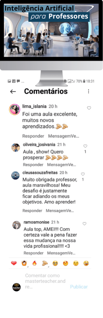 Banner lateral do produto. Segue a descrição do conteúdo: Aprenda como usar a Inteligência Artificial para lhe auxiliar em todas as atividades docentes. Desde o planejamento de aulas até a preparação de materiais e montagem e planejamento das suas aulas.