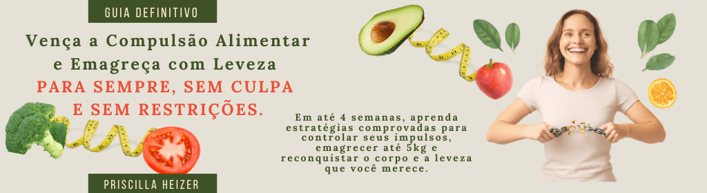 O guia que vai te ensinar em até 4 semanas, estratégias comprovadas para controlar os seus impulsos, emagrecer até 5kg e reconquistar o corpo e a leveza que você merece.
