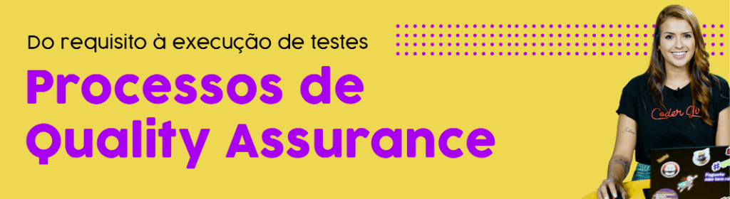 Banner superior do produto. Segue a descrição do conteúdo: Neste curso você irá aprender o passo a passo sobre mapeamento de requisitos, mapeamento de cenários e casos de testes, além de executar de maneira correta, registrar e evidenciar bugs e como formalizar o final do projeto em uma visão de QA.