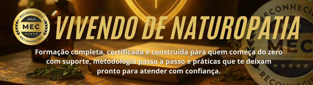 Banner superior do produto. Segue a descrição do conteúdo: Bem-vindo(a) ao Vivendo de Naturopatia, o curso que vai te transformar em um terapeuta integrativo de sucesso! Aqui você terá acesso a mais de 160 aulas que vão te ensinar tudo o que você precisa saber para se tornar um profissional qualificado e bem-sucedido.