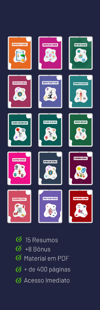 Banner lateral do produto. Segue a descrição do conteúdo: Este material reúne um resumo dos principais conteúdos da disciplina , elaborado de forma clara e objetiva. O objetivo é facilitar a revisão dos temas mais importantes, destacando conceitos, processos e aplicações relacionados à área da saúde.