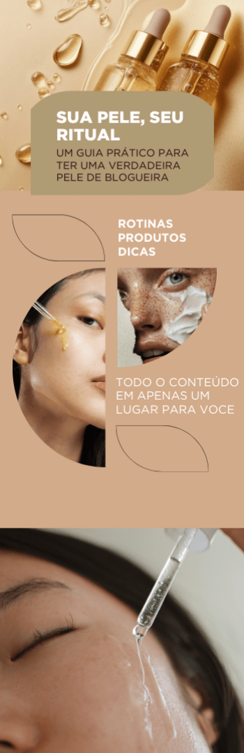 Banner lateral do produto. Segue a descrição do conteúdo: O Pacote Completo Skincare reúne os 3 melhores guias para transformar sua rotina: o Sua Pele, Seu Ritual, o Receitas para Melhorar a Pele e o DermaCare Avançado. Um combo exclusivo que une rotina prática, nutrição interna e cuidados avançados para você conquistar uma pele saudável, bonita e radiante todos os dias.