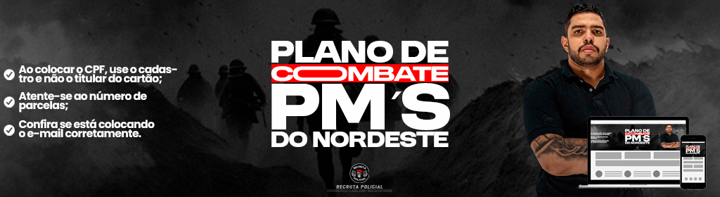 Banner superior do produto. Segue a descrição do conteúdo: Curso voltado para os nove concursos das PMs do Nordeste. Mude de vida, se dedicando integralmente com o melhor material possível