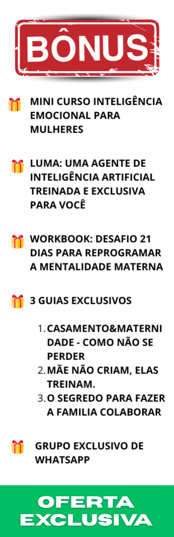 Em apenas 3 semanas, com aulas curtas e práticas, você vai aprender como se libertar da culpa materna, se reencontrar como mulher e viver uma maternidade mais leve, verdadeira e equilibrada — sem precisar se anular, sem abandonar seus filhos e sem carregar o peso da perfeição.