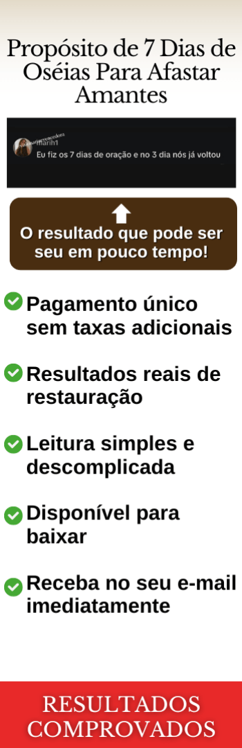 Um propósito de 7 dias baseado na profecia de Oséias para levantar uma cerca de espinhos ao redor do seu relacionamento. Com orações direcionadas, versículos poderosos e ações espirituais, você vai bloquear toda interferência maligna: seja de amantes, confusão ou batalha espiritual. Você conseguirá abrir caminho para a restauração completa. Esse é o propósito para quem crê que o que Deus uniu, ninguém separa.