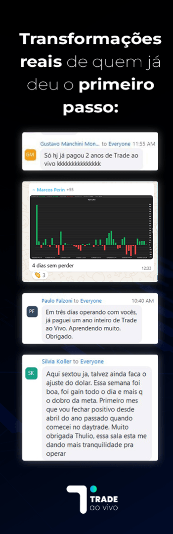 Tenha acesso completo a salas ao vivo com os maiores especialistas do mercado financeiro, onde você recebe análises em tempo real, recomendações práticas e acompanhamento diário para operar com mais técnica, gestão e controle emocional.