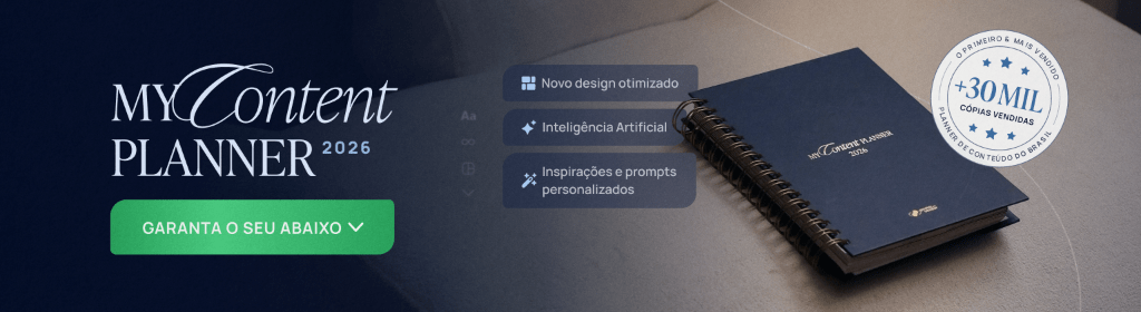 Banner superior do produto. Segue a descrição do conteúdo: O Content Planner 2026 é o calendário queridinho das produtoras de conteúdo, ele é simples e prático para criar conteúdo todos os dias sem travar na falta de ideias.
