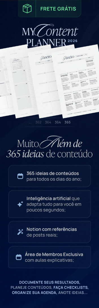 Você recebe 365 ideias prontas, referências, ferramentas e uma IA que adapta tudo para sua voz para você postar com consistência, construir autoridade e vender sem complicação.