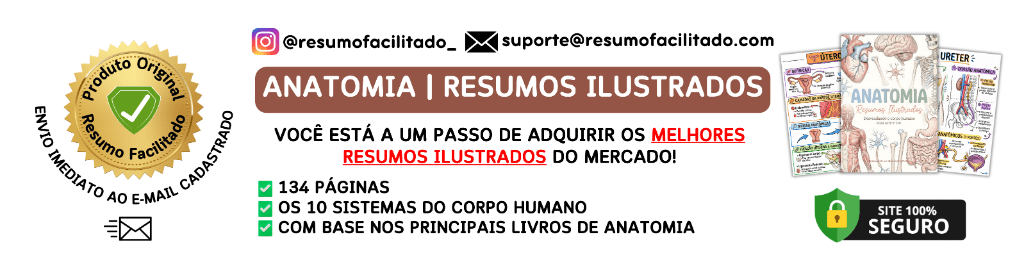 Banner superior do produto. Segue a descrição do conteúdo: Anatomia – Resumos Ilustrados foi criado para transformar completamente a sua forma de aprender. São 134 páginas de conteúdo denso, organizado e visualmente estratégico, com ilustrações detalhadas, cores que facilitam a memorização e explicações diretas ao ponto — sem enrolação, sem perder horas folheando livros ou encarando telas infinitas.