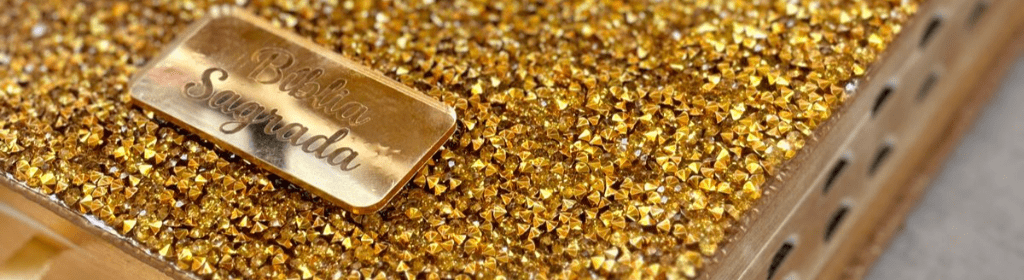 No curso Capas de Troca em Pedraria, você vai aprender a confeccionar capas de luxo sobrepostas, que podem ser encaixadas diretamente sobre a capa original da Bíblia do cliente — uma opção prática, sofisticada e de alto valor agregado.