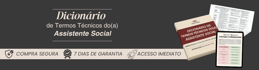 Banner superior do produto. Segue a descrição do conteúdo: Dicionário dos Termos Técnicos do(a) Assistente Social com termos atualizados para que os Assistentes Sociais possam falar e escrever de maneira correta e respeitosa com públicos segmentados.