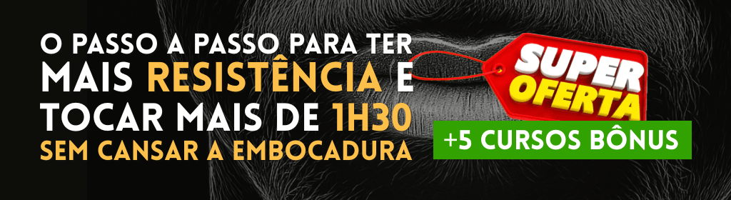 Banner superior do produto. Segue a descrição do conteúdo: O Fórmula da Embocadura Resistente (FER) é um curso online completo, desenvolvido especialmente para trompetistas e trombonistas que desejam conquistar uma embocadura forte, resistente e duradoura.