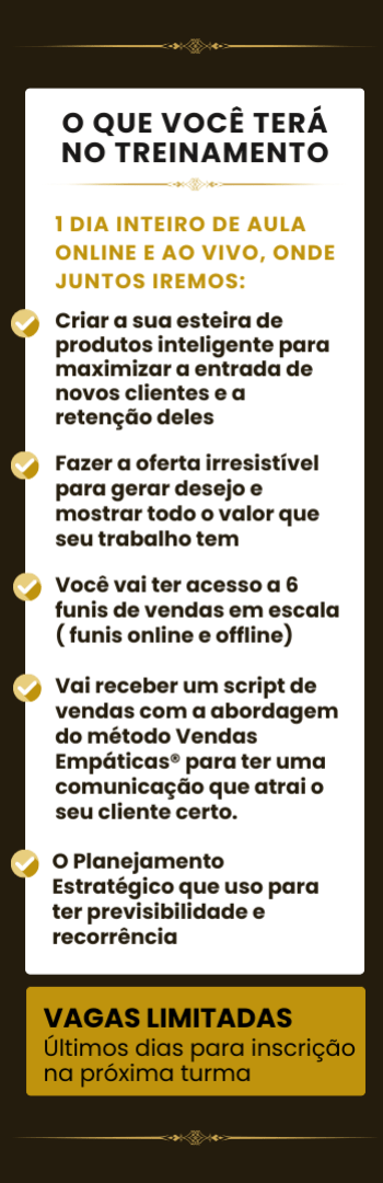 -> Vai receber um script de vendas com a abordagem do meu método Vendas Empáticas para ter uma comunicação que atrai o seu cliente certo.