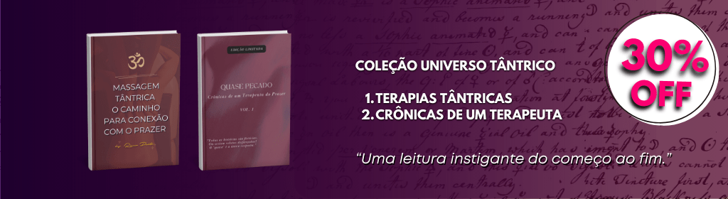 E isso não é tudo! Como bônus exclusivo, você receberá GRATUITAMENTE o livro "O QUASE PECADO: Crônicas de um Terapeuta do Prazer", uma edição limitada com relatos de atendimentos em Terapias Tântricas. Prepare-se para mergulhar em histórias instigantes, inusitadas e cheias de sensualidade, que vão te surpreender e inspirar.