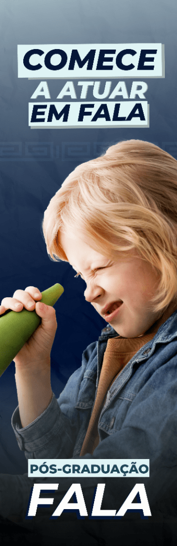 Banner lateral do produto. Segue a descrição do conteúdo: O curso de Pós-Graduação em Fala: Avaliação e Intervenção Baseada em Evidências foi concebido para responder às demandas contemporâneas da Fonoaudiologia, especialmente no que se refere à necessidade de avaliações precisas e intervenções terapêuticas fundamentadas em evidências científicas robustas. Trata-se de uma pós-graduação que integra conhecimentos neuroanatômicos, fonéticos, fonológicos e motores da fala, articulando teoria e prática clínica de forma sistemática e atualizada.