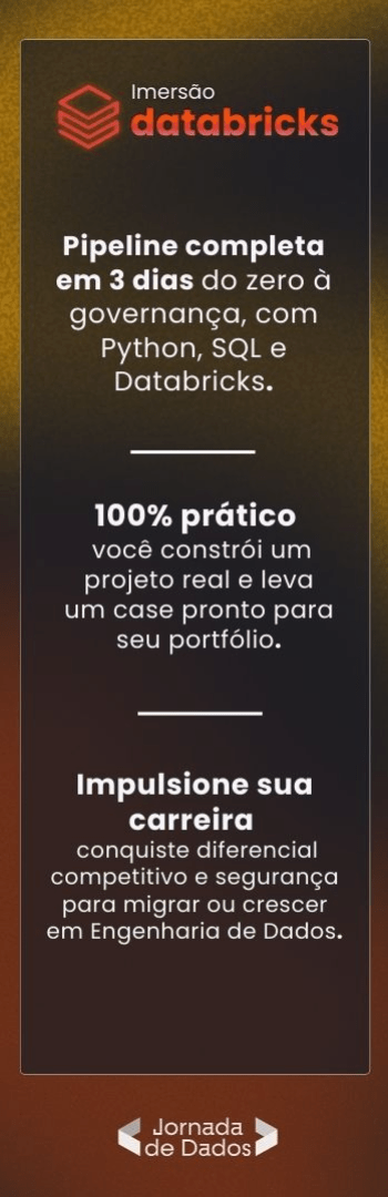 Banner lateral do produto. Segue a descrição do conteúdo: Um programa intensivo e prático onde você constrói, do zero, uma pipeline completa no Databricks, integrando Spark e SQL.