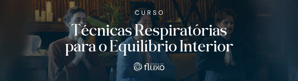 Banner superior do produto. Segue a descrição do conteúdo: O curso de consciência respiratória que ensina técnicas de respiração, consciência corporal e atenção plena para uma vida com menos resistência e mais fluidez. Permita-se embarcar em uma jornada de autodescoberta, fazendo de cada respiração um passo em direção a uma existência mais plena e harmoniosa.