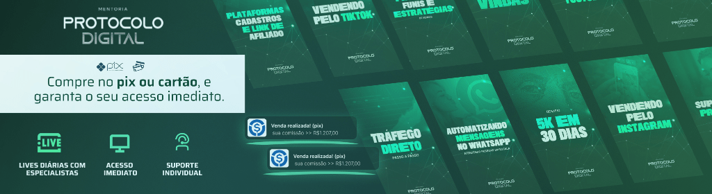 Banner superior do produto. Segue a descrição do conteúdo: O protocolo digital é uma mentoria voltada para produtos físicos e que possui produtos validados utilizando ferramentas através da inteligência artificial.