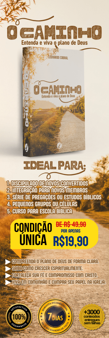 Banner lateral do produto. Segue a descrição do conteúdo: Desenvolvido para orientar novos convertidos e cristãos que desejam aprofundar sua compreensão sobre a fé cristã. Ele apresenta de maneira clara e acessível os fundamentos do plano de Deus para a humanidade, destacando o papel da salvação, a importância da igreja e o compromisso de viver como membro do corpo de Cristo.