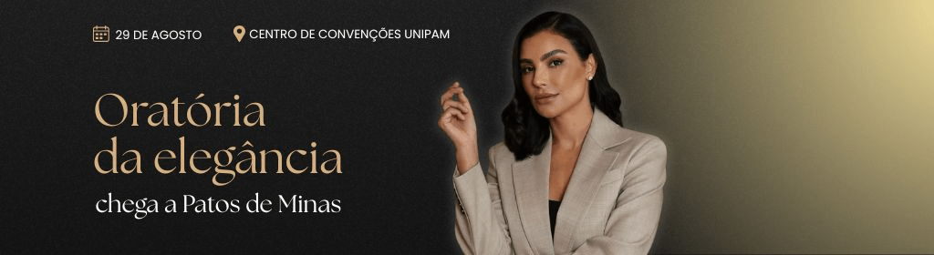 Garanta já sua vaga nesse evento exclusivo e mergulhe no universo da Oratória da Elegância com Cíntia Chagas. Uma noite, um palco, e uma nova forma de se expressar.